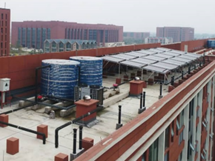 山东临沂科技职业学院一直非常重视对学生公寓的管理,在了解到华天成空气能热水机运行节能,热水输出量大且稳定等诸多优点后,便当即决定摒弃老旧的热水制取设备,改用华天成空气能热水机组来升级改造学生公寓热水系统。